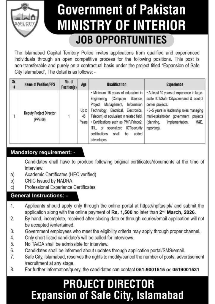 Department: Islamabad Capital Territory Police (Safe City)
