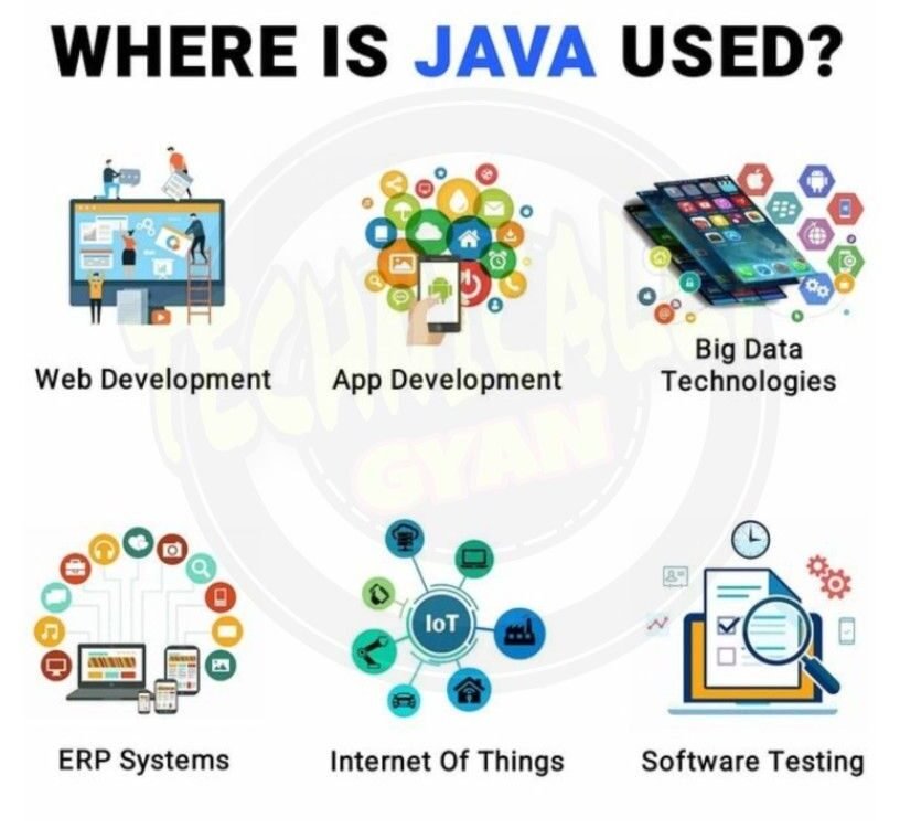 - Java is used for backend and Android development.